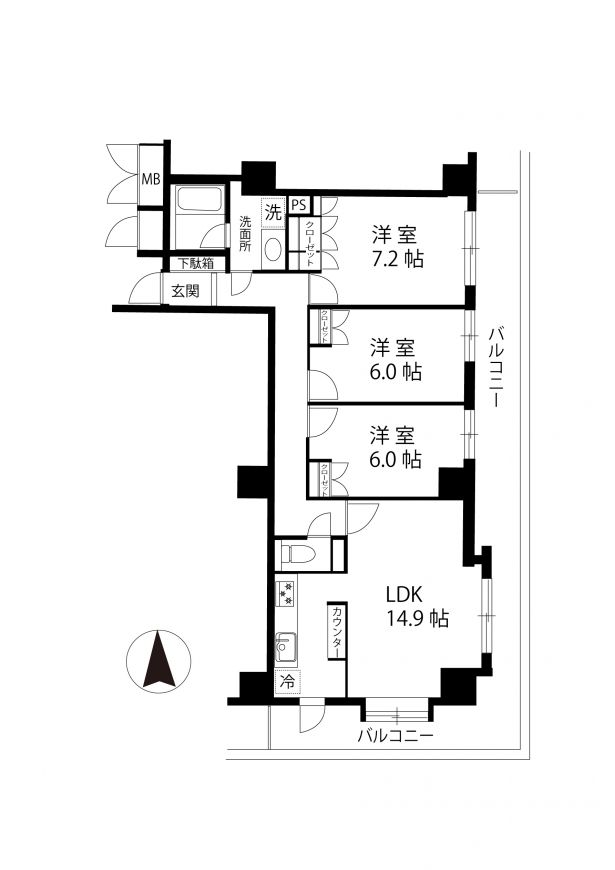 | 間取内訳/間取備考 | LDK14.9帖 / 洋7.2帖 / 洋6.0帖 / 洋6.0帖/ |